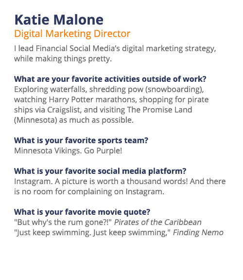 We work with financial services companies, financial advisors and insurance agents to create and implement compliant digital marketing strategies that increase revenue, decrease marketing expenses and improve customer service. Our services include turnkey social media management, website management, email marketing and content strategy at the individual and enterprise levels, as well as a comprehensive education platform that equips our clients with the tools and knowledge to successfully manage their online presence.